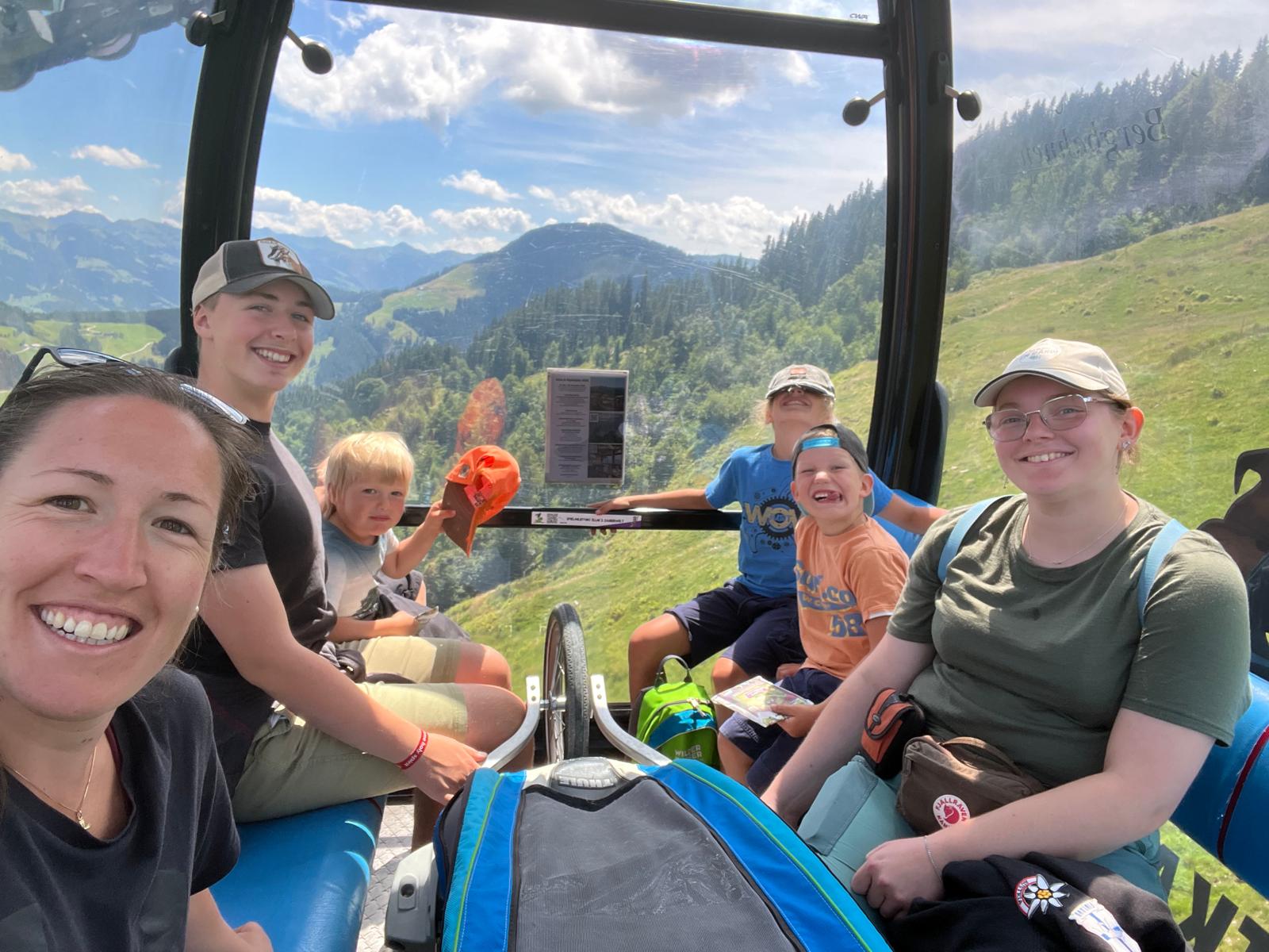Tillsammans med familjen fick jag följa med upp i gondol till ett stort bergsområde som under vintern också var en skidanläggning. Här uppe fanns det mycket att göra för barnen och jag och Elisabeth snackade en hel del.