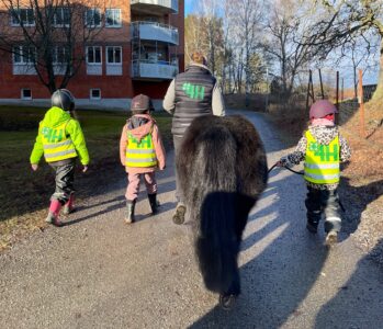 På gården bor våra två shetlandsponnier Doris och Blixten.