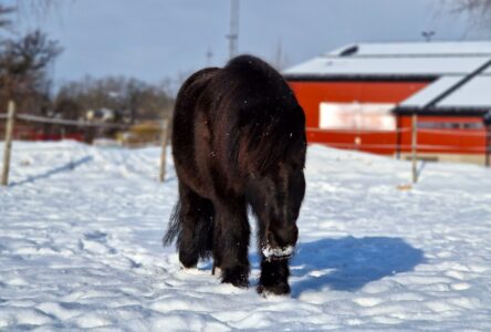 Kännetecken: Doris är en helsvart Shetlandsponny