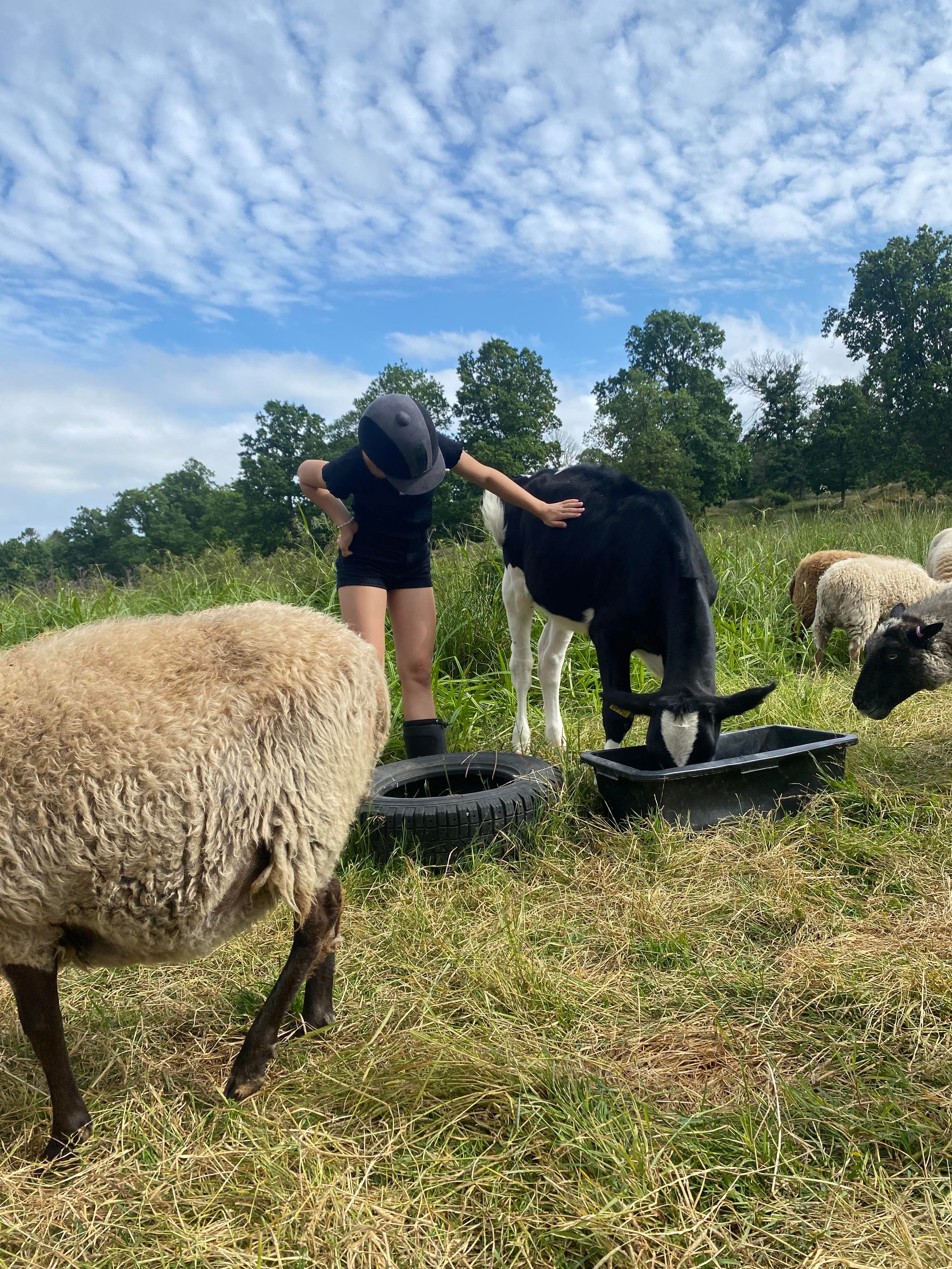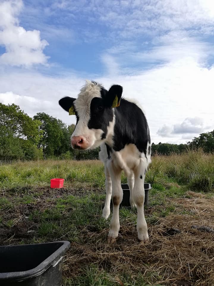 Kalvarna på vår gård kommer från en närliggande bondgård som vi har ett nära samarbete med. Varje år får vi två nya kalvar som får växa upp här hos oss under ungefär ett års tid. De gillar att bli kliade och att vara ute i hagen. När de blivit lite större flyttar de hem igen till bondgården, där de sedan blir mjölkkor.