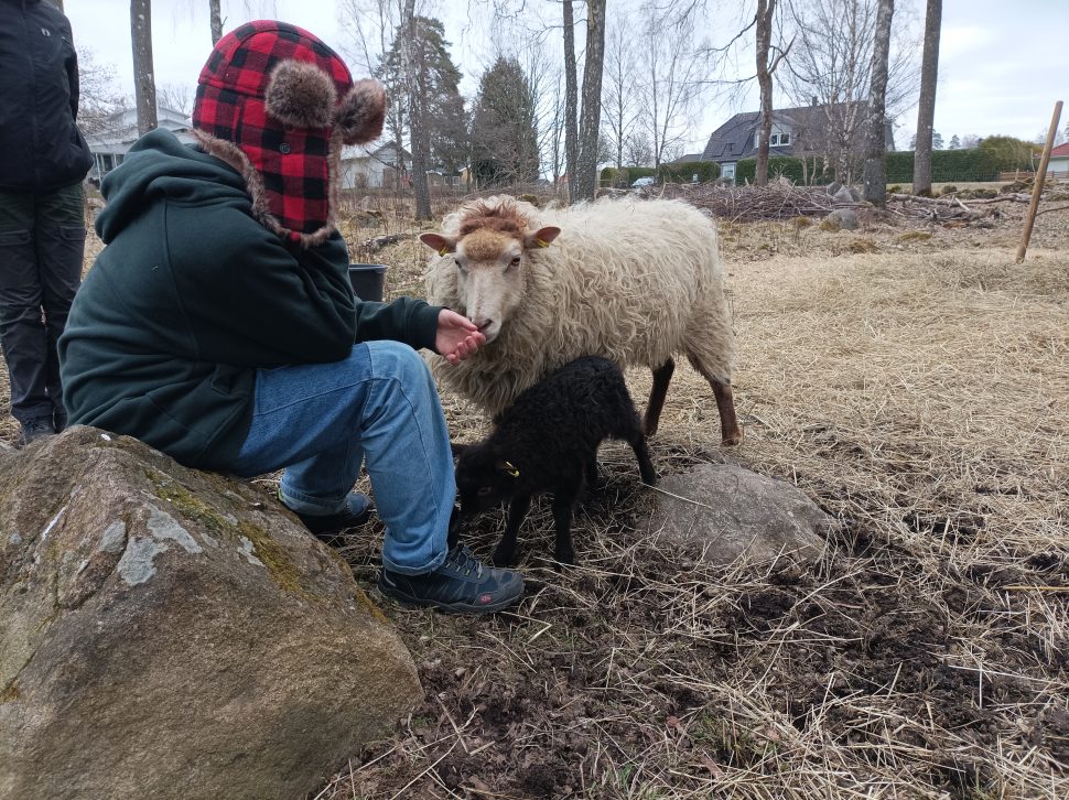 Vi börjar med att mata och lära känna fåren. Vad vet eleverna redan om får och hur blir egentligen en tröja till? Vi känner på ullen, tvättar, kardar, färgar och tovar tillsammans utifrån klassens förutsättningar. Det kanske blir en ett enkelt litet får som barnen pysslar och tar med sig hem eller så blir det en avancerad elva. Klassläraren bestämmer tillsammans med personalen på gården vilken nivå programmet ska läggas på så alla elever ha nytta av dagen.